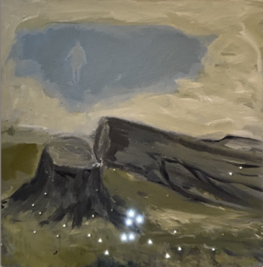 Moonlight, acrylic on paper, 11×18, 2017“outside Reykjavik mountain with ice” oil on wood panel 14 xrocks in Granada 13rock drawing 4, Granada