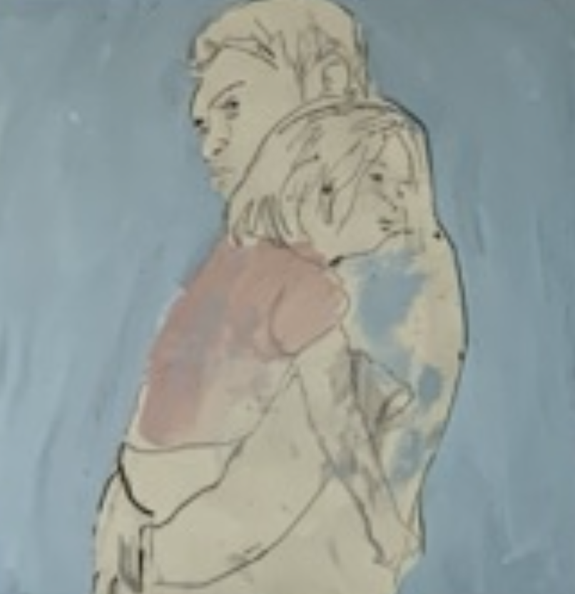 woman with daughter, collage on paper, 10×17, 2022