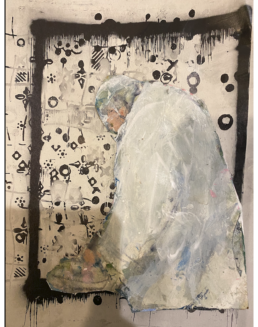 posse, collage on paper, oil on paper, 2022Devil on horseback 2019 mixed media 27X44Granada Nicaragua 2017 Acrylic on Canvas